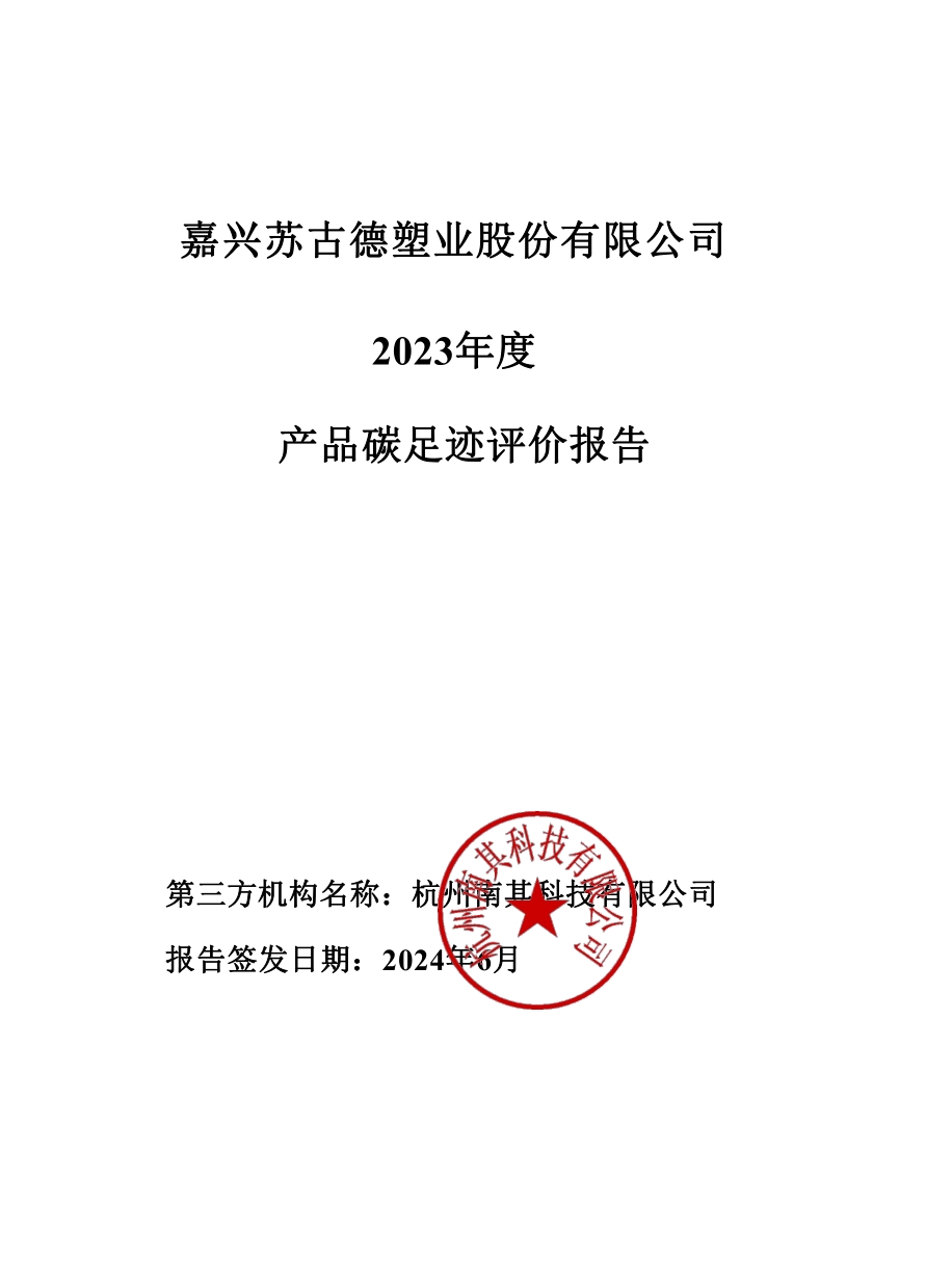 关于嘉兴苏古德塑业股份有限公司2023年度产品碳足迹评价报告的文件公示